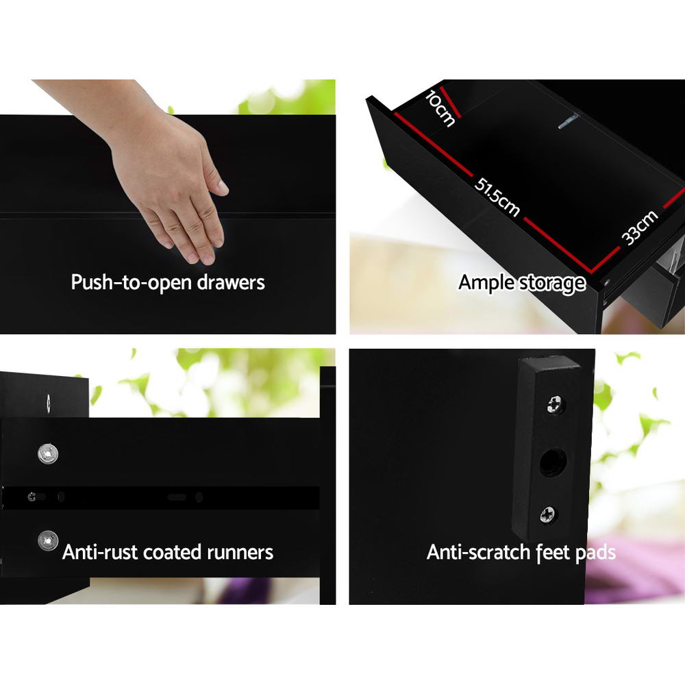 Crafted Comforts Bedside Table LED 2 Drawers - LUMI Black