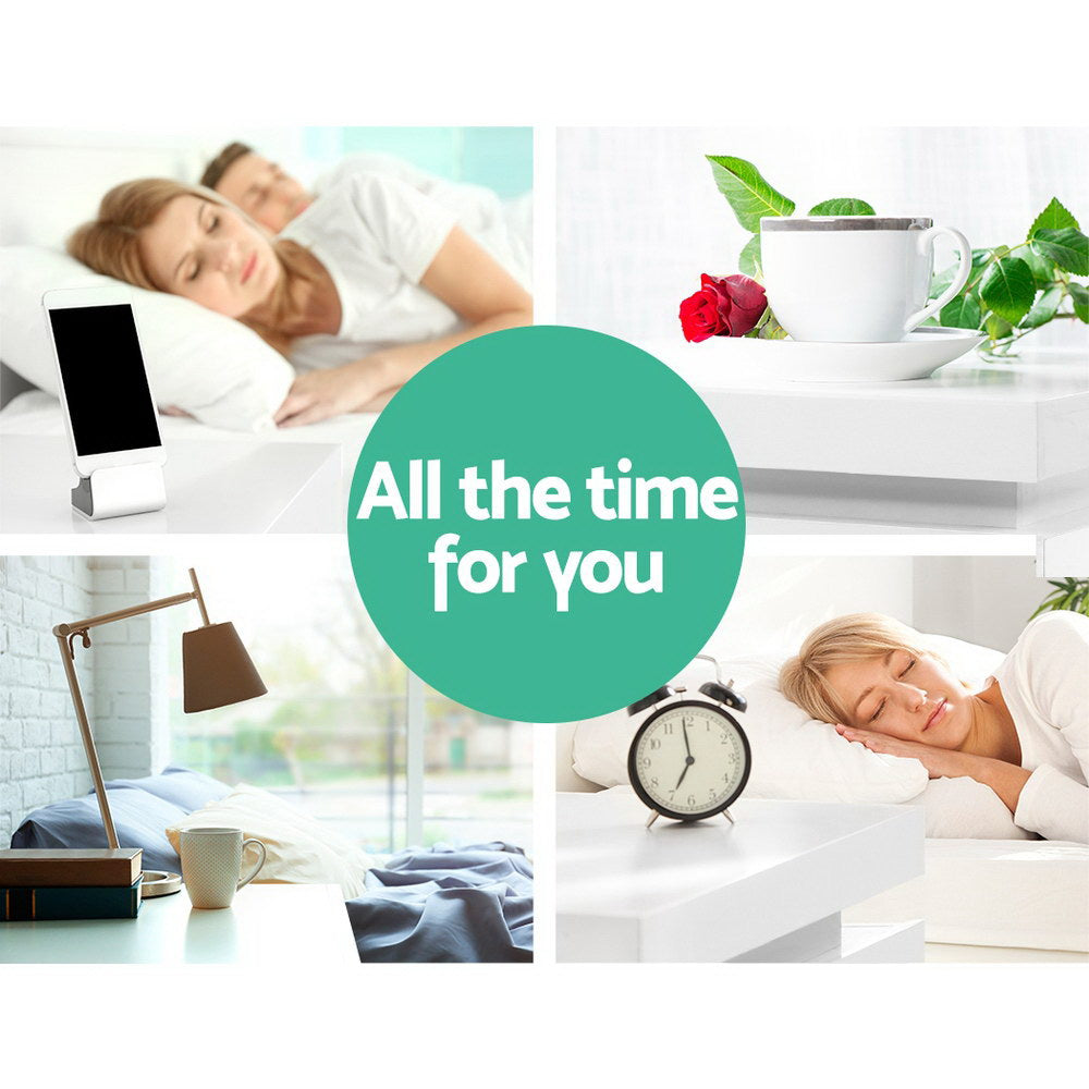 Crafted Comforts Bedside Table LED 3 Drawers - COLEY White